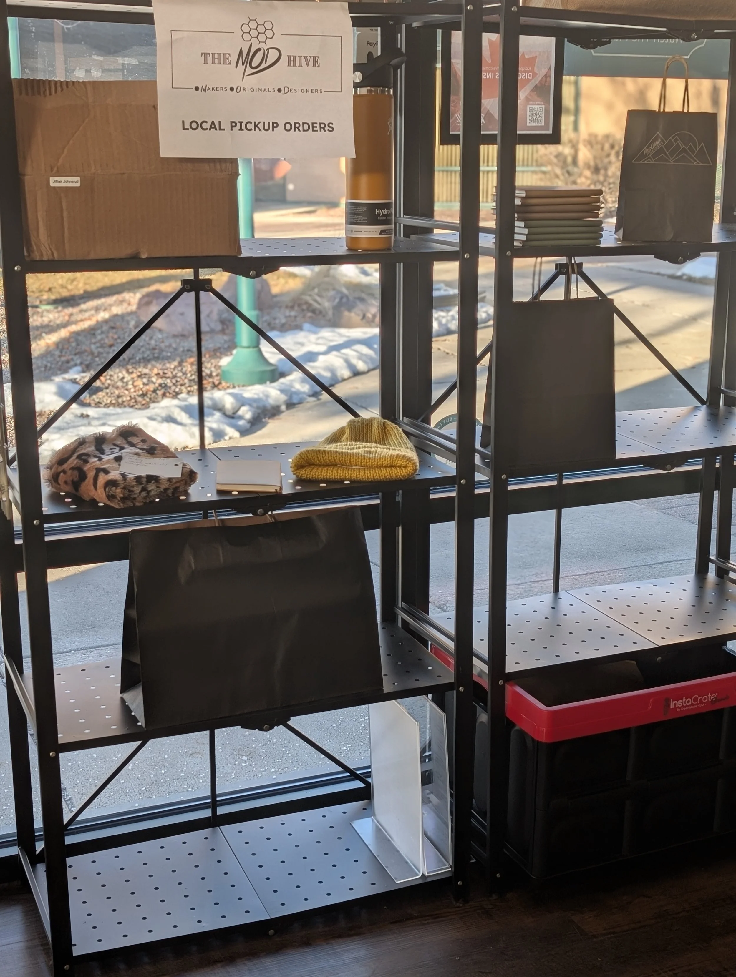 The MOD Hive provides a free safe space for local handmade artisans to drop off orders. We’re open 7 days a week, 8 hours a day which should provide ample time for your customers to stop by and pick up their orders.